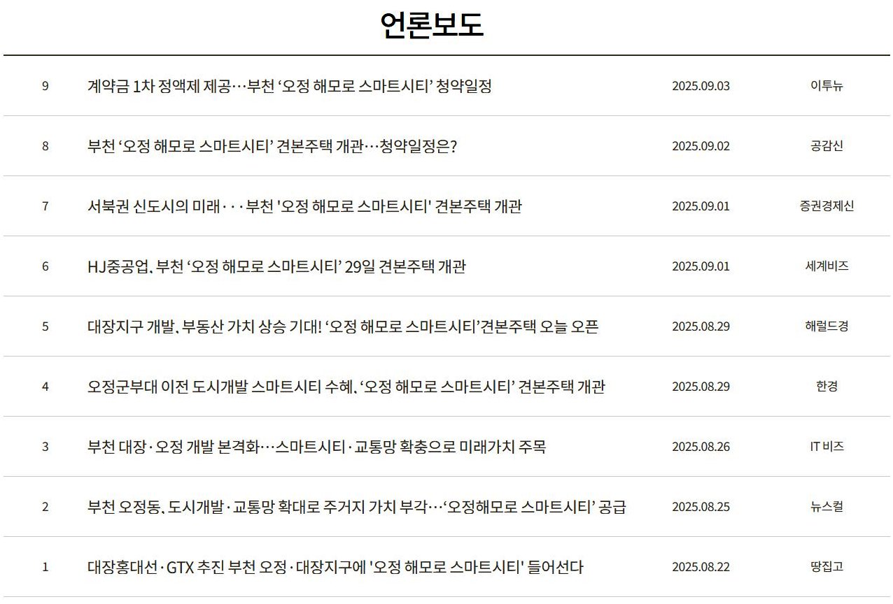 부천 오정해모로 관련 보도자료